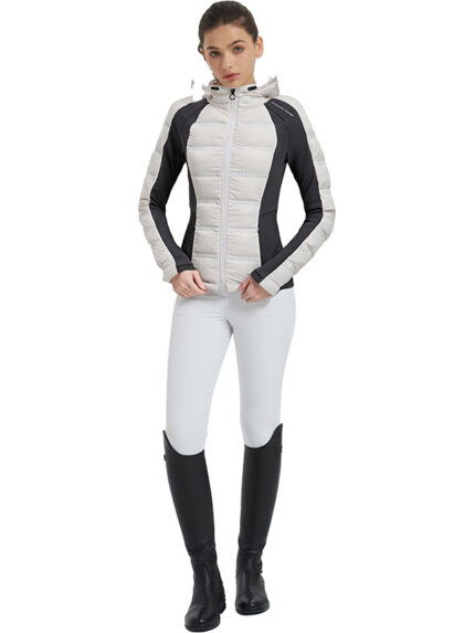 Elevate your equestrian wardrobe with our stylish women’s winter jacket, specially designed for outdoor riding and equestrian activities. Crafted from durable, windproof, and wear resistant fabric. It provides reliable protection against the elements. The plush cotton filling ensures warmth and comfort during chilly winter rides. Featuring a sleek, understated design accented with sparkling rhinestones, this jacket combines elegance with functionality. The contrasting rhinestone details add a touch of sophistication to the sporty silhouette, making it perfect for both riding sessions and casual outings.