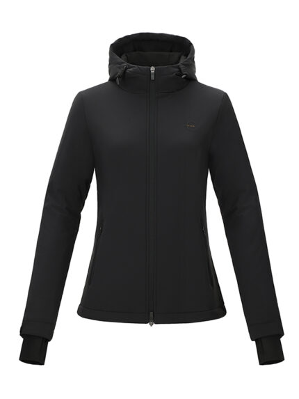 Features include a waterproof zipper with a customized zipper head, and a magnetic buckle system to securely fasten the hood, offering added safety and convenience when riding on horseback. Lateral 3D heat pressed detailing enhances the jacket’s sleek, high quality finish. Perfect for winter riding, this jacket combines advanced thermal efficiency, durability, and professional craftsmanship to meet the demands of serious equestrians
