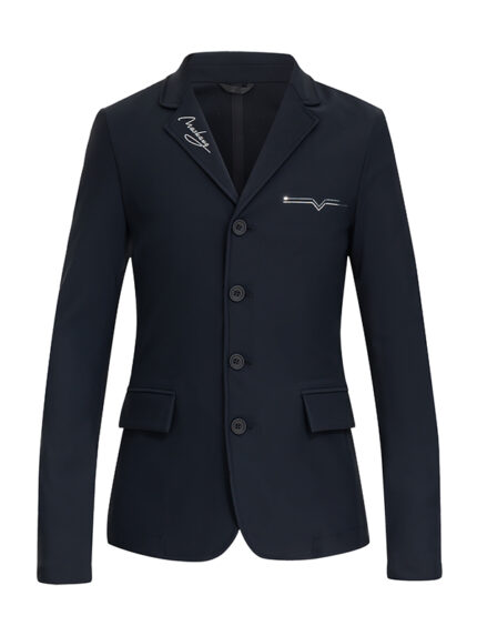 Experience a perfect blend of classic style and modern technology. Our signature show jacket features a slim, flattering fit that enhances your silhouette in the saddle. Delicate embroidery at the neckline adds a touch of luxury, while our dual-layer composite fabric provides maximum stretch and breathability for unrestricted movement.