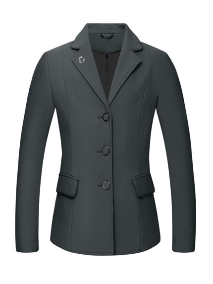 Experience a perfect blend of classic style and modern technology. Our signature show jacket features a slim, flattering fit that enhances your silhouette in the saddle. Delicate embroidery at the neckline adds a touch of luxury, while our dual-layer composite fabric provides maximum stretch and breathability for unrestricted movement.