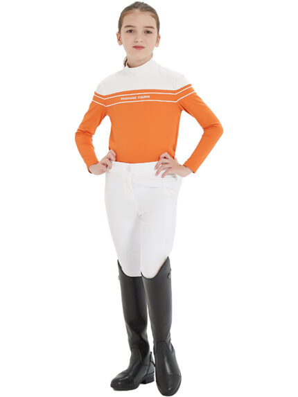 High waist design with tailor 3D cut, super elastic and breathable for this riding leggings.Super soft feel with skin friendly material to support maximum comfortable for our young riders.