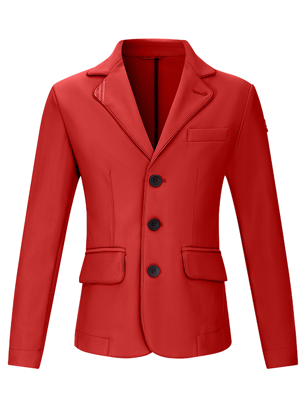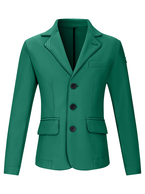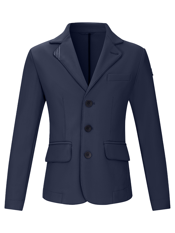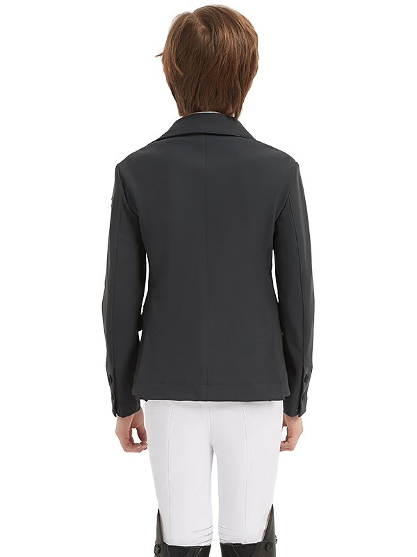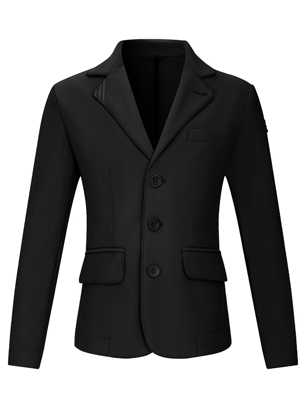 Experience a perfect blend of classic style and modern technology. Our signature show jacket features a slim, flattering fit that enhances your silhouette in the saddle. Delicate embroidery at the neckline adds a touch of luxury, while our dual-layer composite fabric provides maximum stretch and breathability for unrestricted movement.