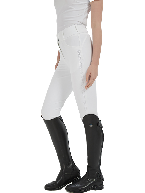 Description: Crafted from our signature double-layer composite fabric, these breeches deliver exceptional comfort and stretch. They feel gentle against the skin while boasting impressive durability, greatly extending their life of use. What sets them apart is the seamless bonded construction on the inner layer , this minimizes friction between stitches and skin, ensuring riders enjoy maximum comfort whether competition or training.