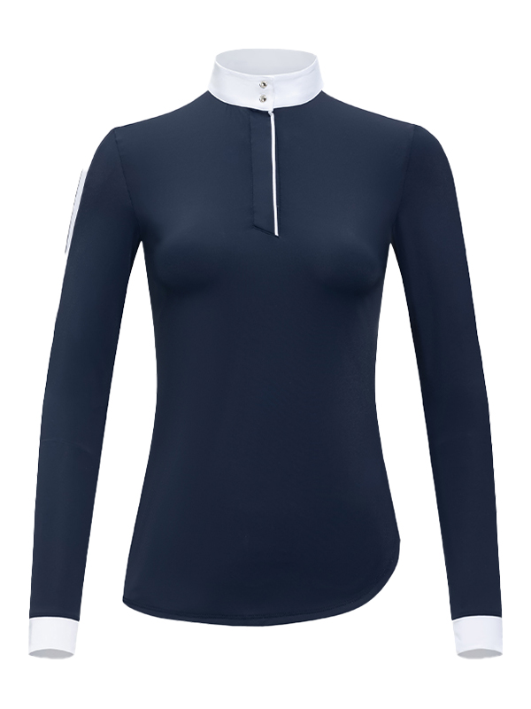 Stay protected and stylish with our Ladies Long Sleeve Competition Shirt, crafted from sunproof fabric to meet summer sun protection needs. Featuring a classic design with an innovative arc shaped hem that adds a modern touch and versatile styling options. Perfect for competition and casual wear, combining functionality with timeless elegance.