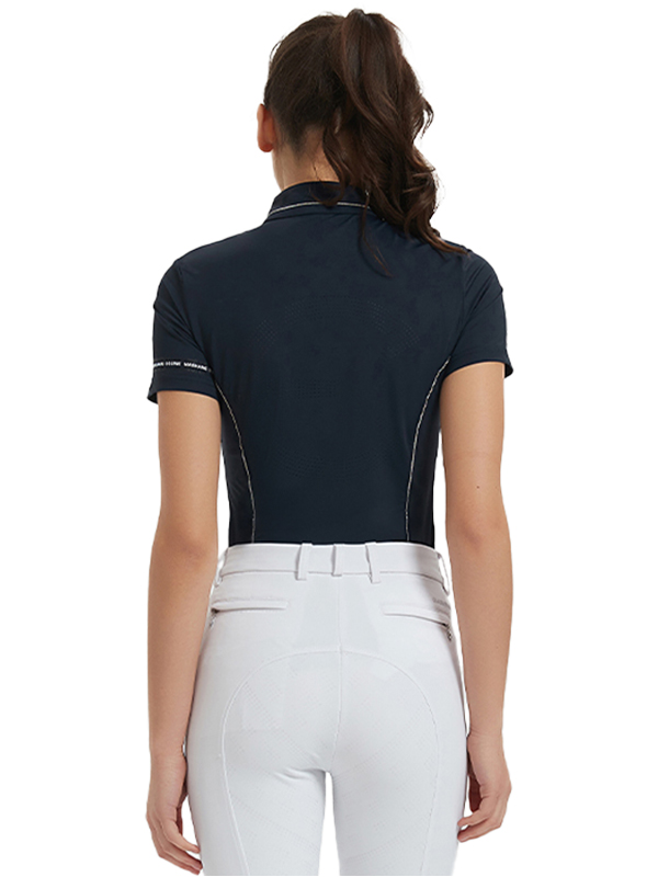 These shirts feature a design with exquisite and shining diamond stripes adorned on the dark blue fabric, highlighting a sense of delicacy and fashion. They are perfect for stylish female riders to wear in summer.